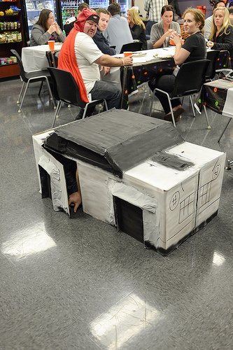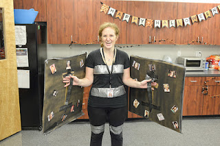 My own daughter hauled out her costume to peals of laughter and luckily no hurt feelings. She was a binder full of women (picture above). It was her fiance’s idea. His costume was a transformer (hidden in that box just above and to the right). He’s more creative than he realizes.